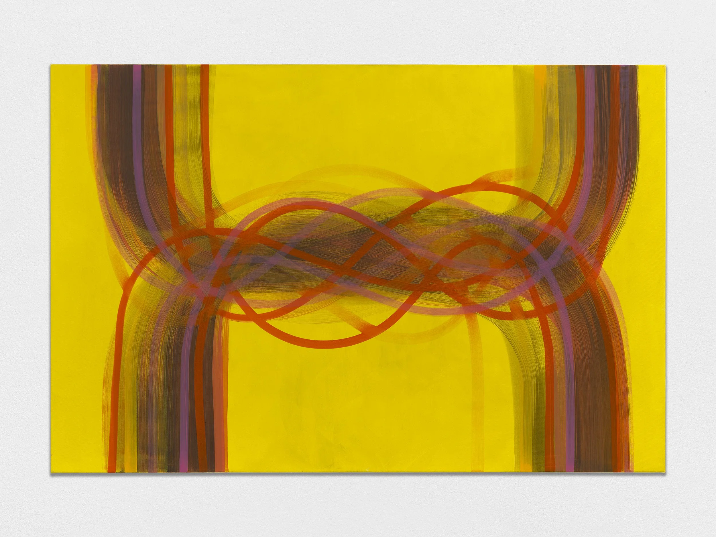On the return to her studio in Bow, London, these works of reconnaissance provide fuel to be worked through. In a process of repetition and distillation, these works evolve slowly, reworked into pieces that hold an essence of their original context, releasing the specificity of reference to become vessels for broader ideas. Colour comes to the fore as does an awareness of the body, movement and the breath. In this way, Ord moves between being the gregarious, outward-looking gatherer of information and time of solitude and focus in the studio.